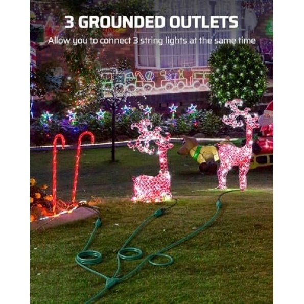DEWENWILS Outdoor Extension Cord 1 to 3 Splitter for Christmas, 3 Prong Outlets