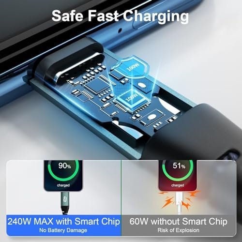 - Unmatched Safety and Compatibility Our usb c charger cable is designed with your safety in mind. The certified smart chip regulates the current and voltage, it intelligently adjusts the input power to prevent overcharging and overheating, maximizing your battery life.