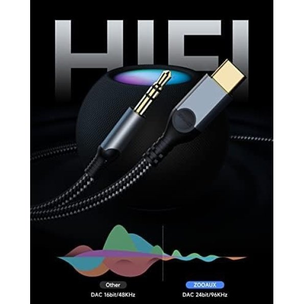 - Premium Audio Quality: This USB Type C to 3.5mm aux cable includes built in newest powerful DAC-digital to analog converter ensuring stable and lossless sound transmission of audio signal, and the USB C to 3.5mm Audio Jack Adapter has clear and stable sound quality, Hi-Res up to 24bit/96KHz, provide flawlessly music transmission and clear HIFI sound quality.